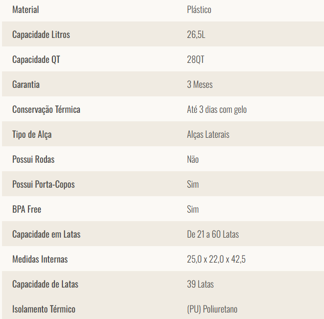 - Capacidade: 26,5 litros