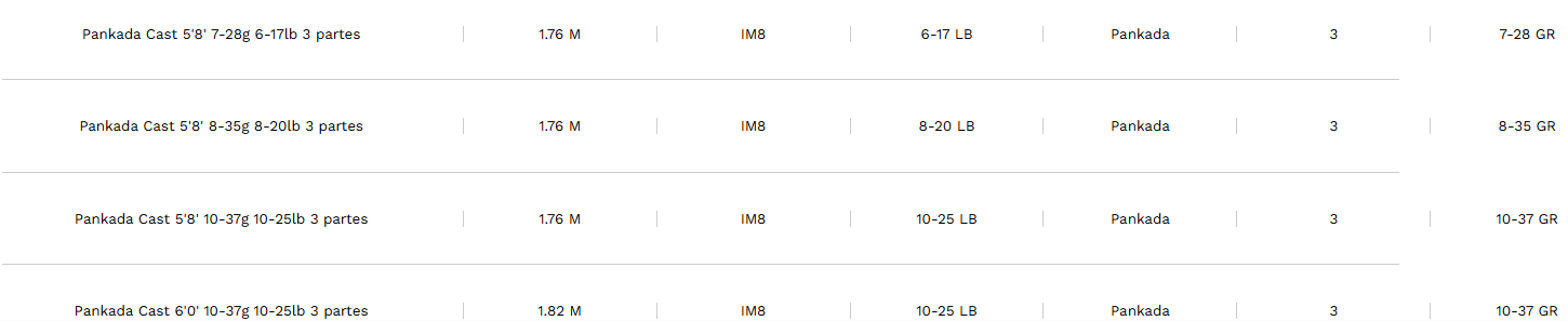 Apresenta Blank em carbono Torayca IM8 (40 milhões de modulos por polegada quadrada), composição que garante uma vara leve, porém extremamente resistente, capaz de suportar as condições mais adversas sem perder a sensibilidade.